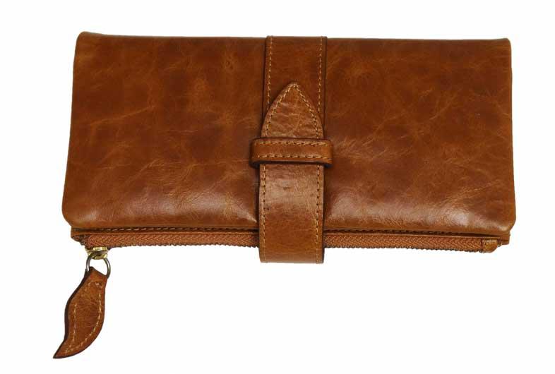 Esta billetera de color liso luce las extraordinarias características de la piel de grano entero o plena flor. En este tipo de billeteras no se añade ninguna otra decoración suplementaria: se trata de un artículo de piel natural de alta calidad. Cierra fácilmente gracias al diseño sencillo correa y hebilla.