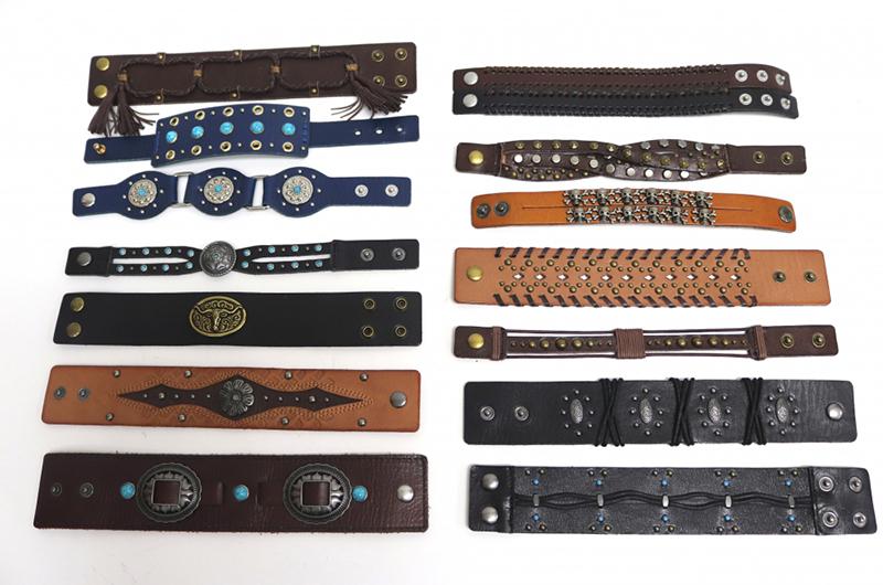 Muchos artículos de piel se utilizan en forma de pulseras, los cuales se embellecen con remaches, tejidos, bordados, grabados, estampados, entre otros tantos elementos o procedimientos sobre la piel. Entre tantos modelos posibles, las pulseras con remaches suelen ser los más populares en diseño.